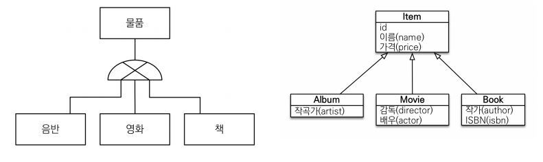- 매핑 전략을 지정해야하며, 여기선 조인 전략을 사용 (