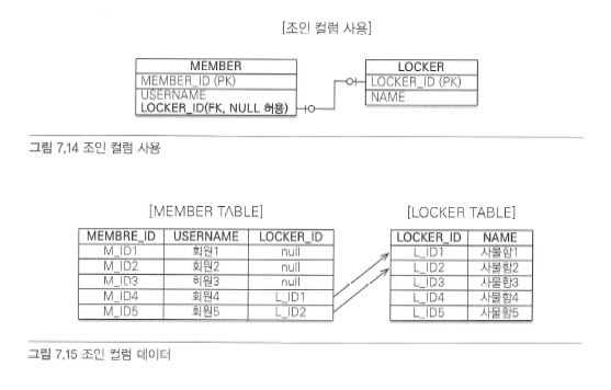 - 조인 테이블은 주로 다대다 관계를 일대다, 다대일 관계로 풀기위해 사용 그렇지만 일대일, 일대다, 다대일 관계에서도 사용가능