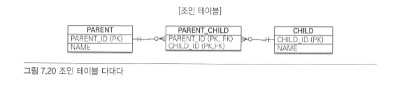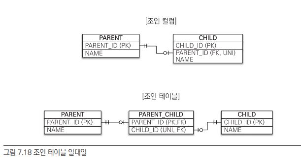 - 아주 가끔 관계를 맺는다면 외래 키 값 대부분이 null로 저장되는 단점