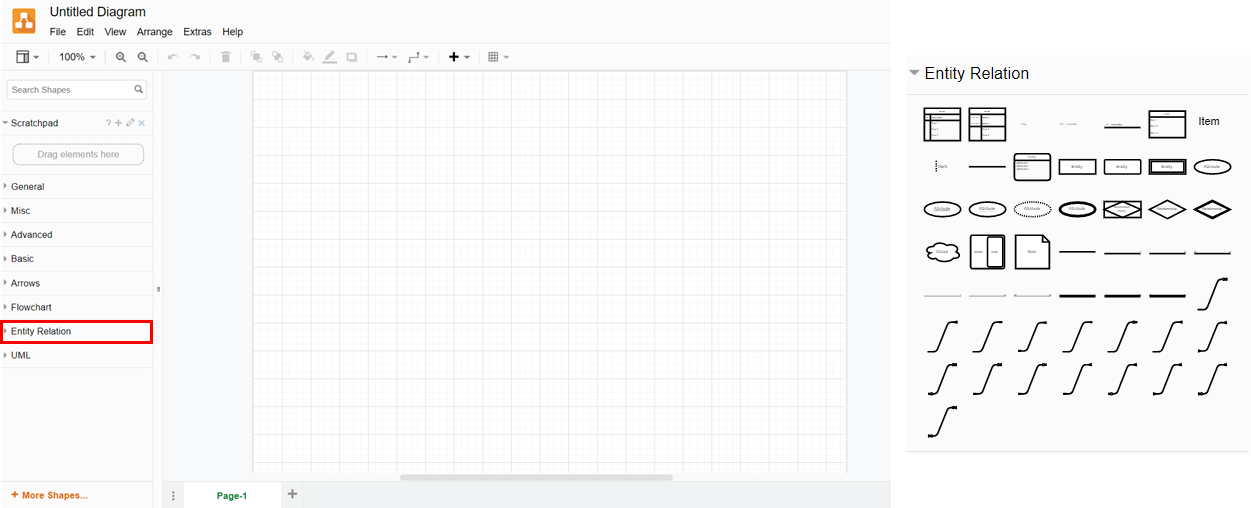 - 왼쪽 메뉴에 Entity Relation 메뉴 선택 Table 선택